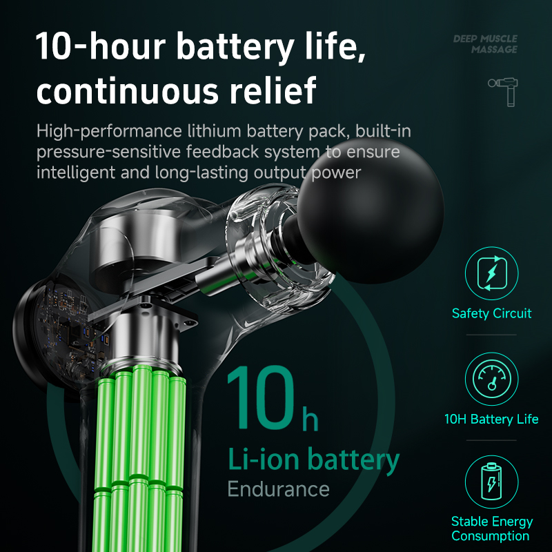 - 10 hours of long-lasting battery life:Massage gun deep tissue percussion muscle massager for pain relief,high efficiency lithium battery pack with 10 hours of ultra long battery life, safe circuit, stable energy consumption, built-in pressure feedback system, ensuring intelligent and long-lasting power output.